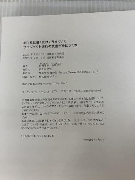 【カバー無し・書き込み有り】紙1枚に書くだけでうまくいく プロジェクト進行の技術が身につく本 翔泳社 前田 考歩