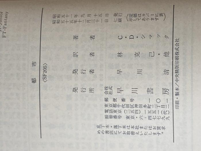 都市 (ハヤカワ文庫 SF 205) 早川書房 クリフォード D.シマック※イタミ有