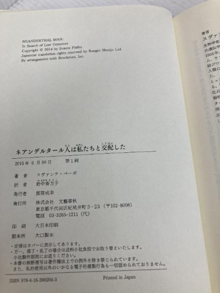 ネアンデルタール人は私たちと交配した 文藝春秋 スヴァンテ ペーボ