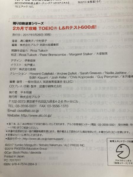 2カ月で攻略 TOEIC(R) L&Rテスト600点! (残り日数逆算シリーズ) アルク 溝口 優美子