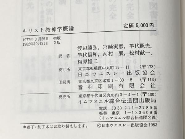 キリスト教神学概論 (1982年) 日本ウェスレー出版協会 渡辺 勝弘※カバー無し