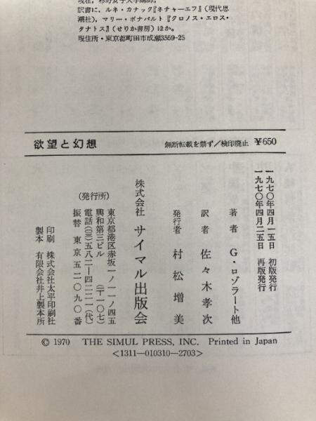 欲望と幻想―精神分析における構造主義 (1970年) (サイマル双書)