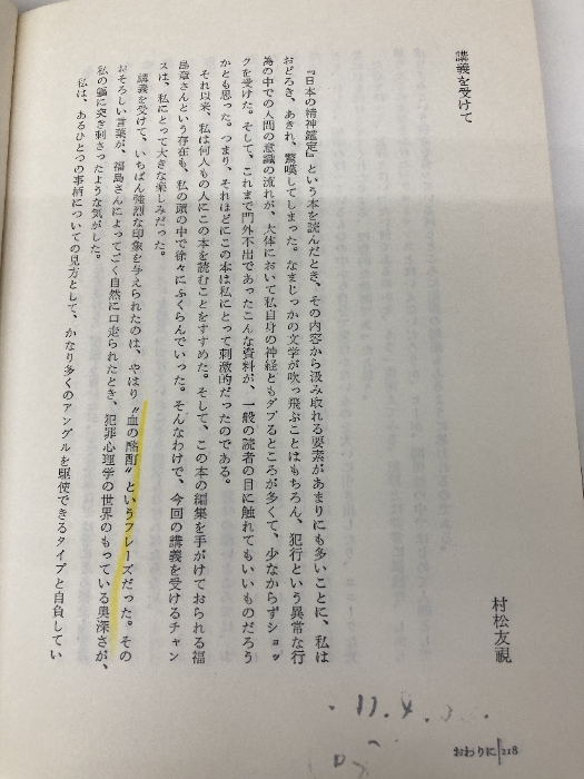 【※多数の書き込み有】血が酩酊するとき: 精神鑑定講義 (LECTURE BOOKS 4-8) 朝日出版社 福島 章