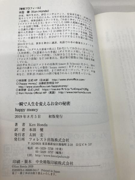 一瞬で人生を変える お金の秘密 happy money フォレスト出版 Ken Honda