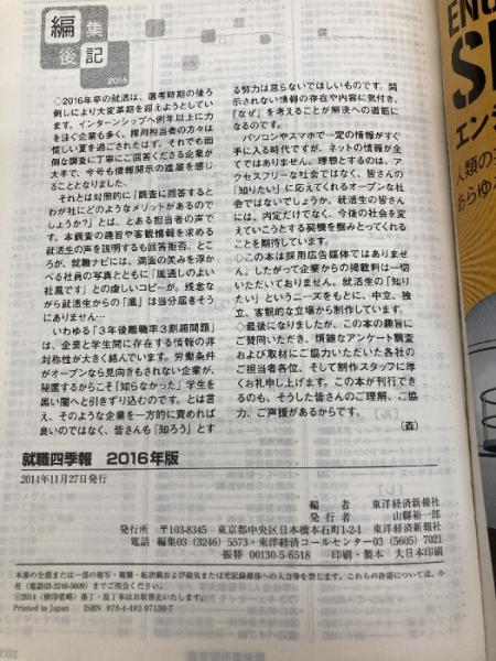【※カバー無し】就職四季報 2016年版 東洋経済新報社 東洋経済新報社