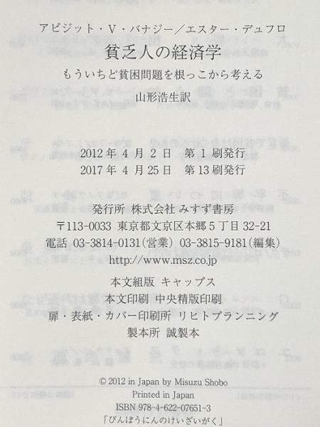 貧乏人の経済学――もういちど貧困問題を根っこから考える みすず書房 アビジット・V・バナジー