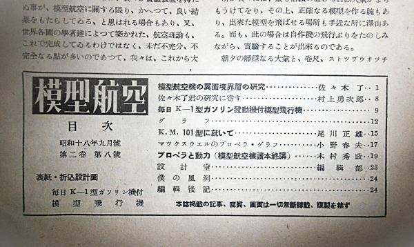 模型航空 昭和18年9月号 毎日K-1型ガソリン機発表 【折込設計図・欠】