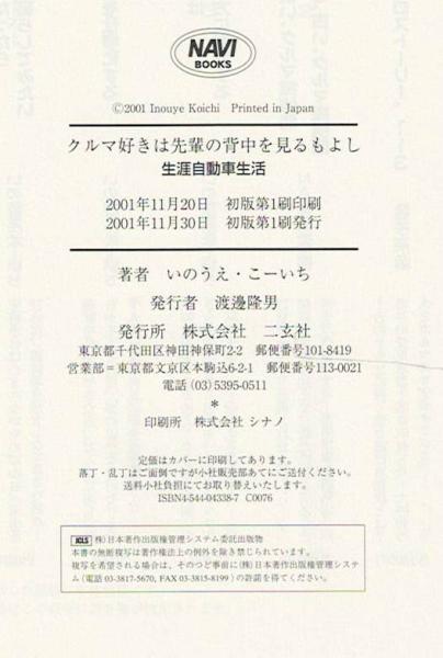 クルマ好きは先輩の背中を見るもよし : 生涯自動車生活 <NAVI books> 初版