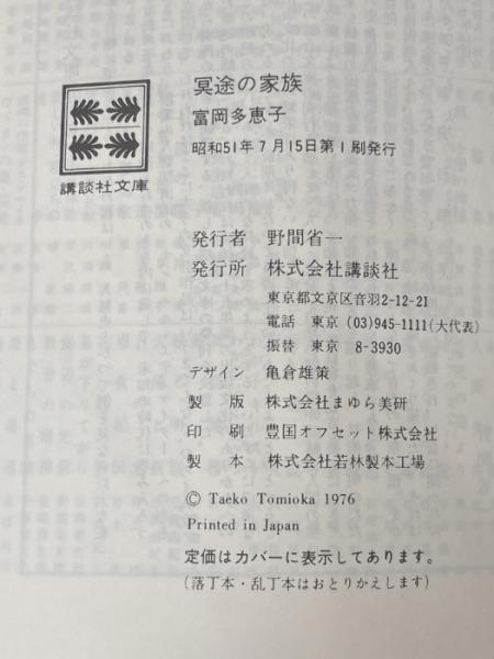 冥途の家族 (講談社文庫 と) 講談社 富岡 多恵子※イタミ有