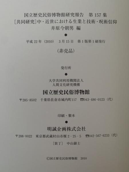 国立歴史民俗博物館研究報告 第157集 共同研究:中・近世における生業と技術・呪術信仰