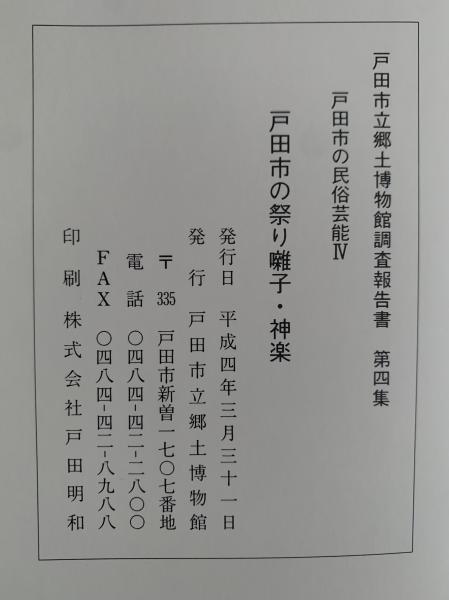 戸田市の民俗芸能Ⅳ 戸田市の祭り囃子・神楽 戸田市立郷土博物館調査報告書 第四集