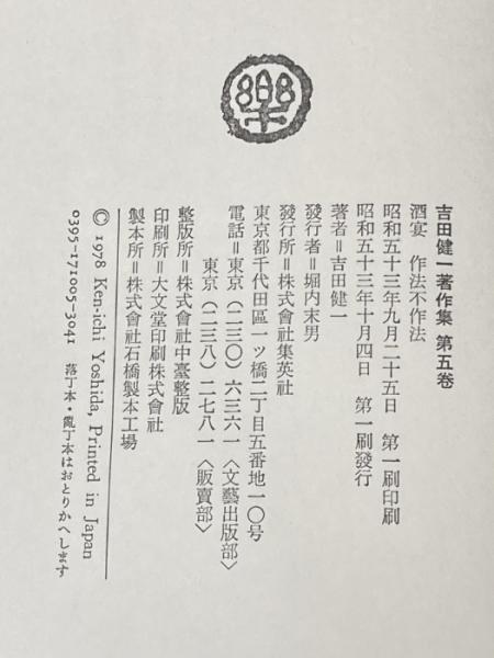 吉田健一著作集〈第5巻〉酒宴.作法無作法 (1978年)