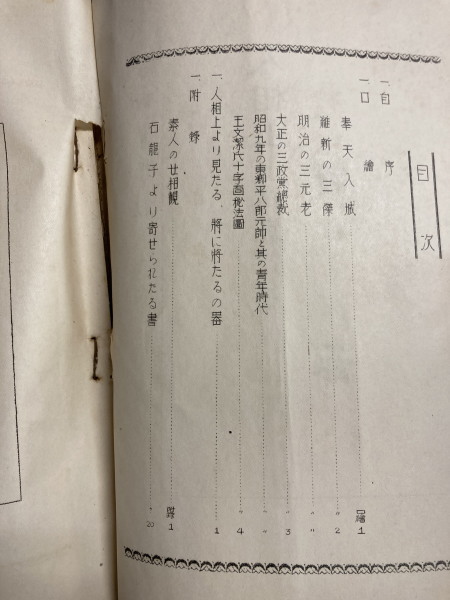 【自序】●口絵 ・奉天入城 ・維新の三傑 ・明治の三元老 ・大正の三政黨總裁 ・昭和九年の東郷平八郎元帥と其の青年時代 ・王文潔氏十字面從法圖 ●人相上より見たる、將に將たるの器 ●附錄 素人のせ相観 ・石龍子より寄せられたる書