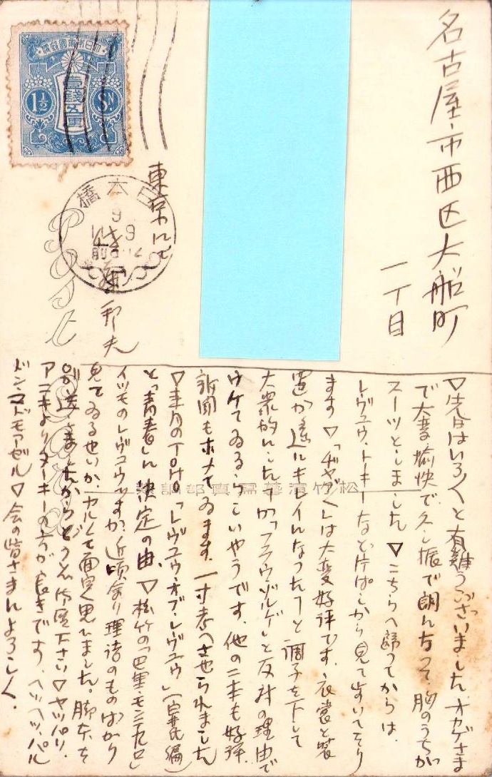 (葉書)宝塚・佐藤邦夫からの葉書