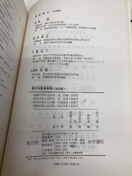 電子計算機概論 改訂版 法学書院 蔵田 昭