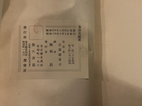 吾妻雄兎子 紫書房 1953年(初版)