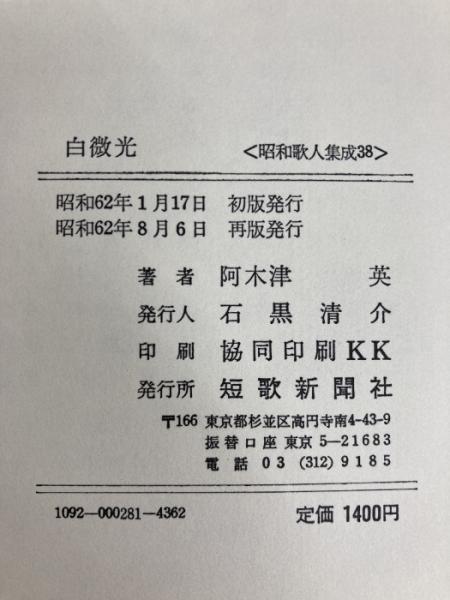 白微光 阿久津英歌集 昭和歌人集成・38 短歌新聞社 阿久津英