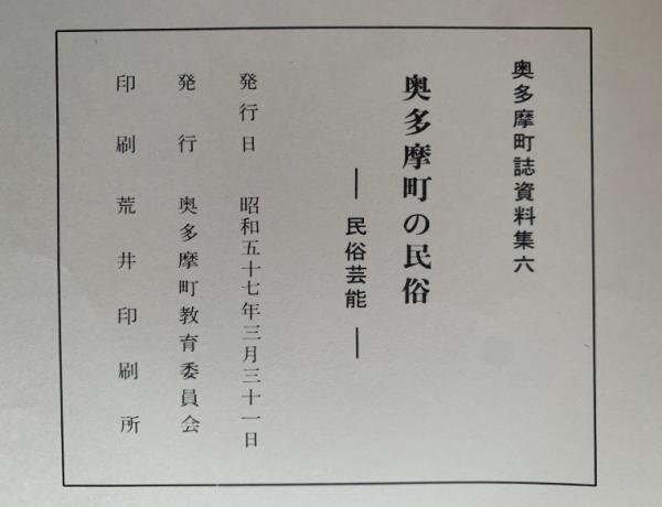奥多摩町の民俗 民俗芸能 奥多摩町誌資料集六