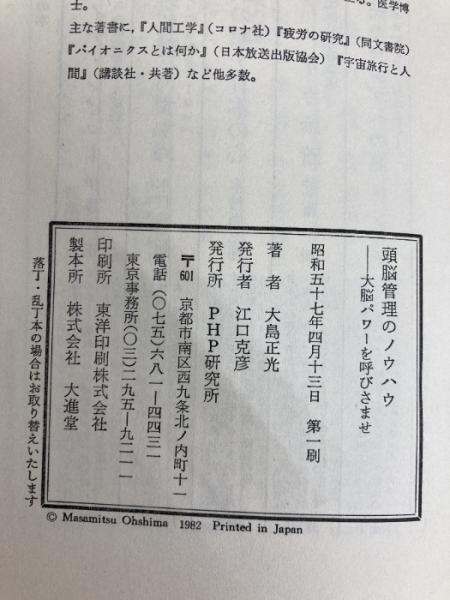 頭脳管理のノウハウ―大脳パワーを呼びさませ (1982年) PHP研究所 大島 正光