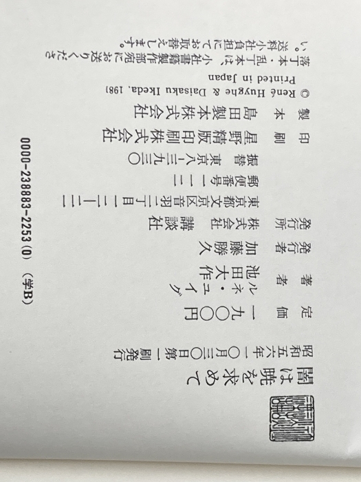 • 解説 箱付。箱にスレ、ヤケ、多数の強いシミ、キズ、傷み、裸本(カバー無し)。表紙にスレ、ヤケ、シミ、天地小口にスレ、ヤケ、多数のシミ、傷み、本にスレ、ヤケ、多少のシミ、角のヨレ、角の折れ、があります。本を読むことに支障はございません。※注意事項※■毎商品チェック後出品しておりますが、中古品ということもあり、多少の書き込み等のチェック漏れがあった際はご容赦下さい。■付録等の付属品がある商品の場合、記載されていない物は『付属なし』とご理解下さい。■併売販売をしているため、在庫切れの場合はキャンセルとなります。予めご了承ください。