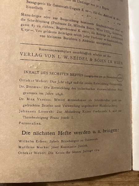Osterreich; Zeitschrift fur Geschichte. 1. Jahrgang Heft 6.