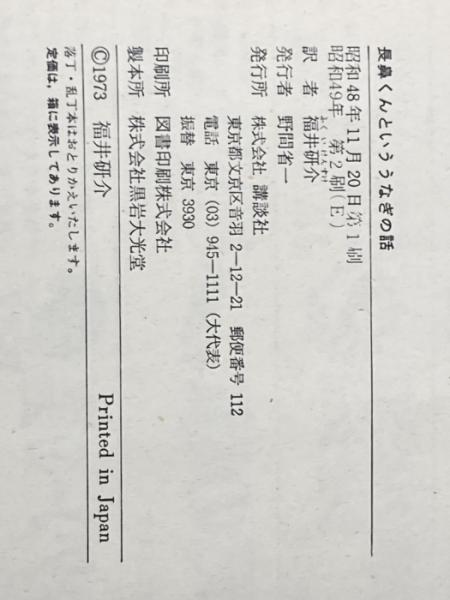 長鼻くんといううなぎの話 (世界の児童文学名作シリーズ) 講談社 K・イオシーホフ※カバー無し