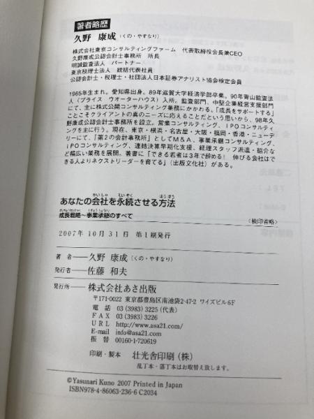あなたの会社を永続させる方法 成長戦略~事業承継のすべて あさ出版 久野 康成