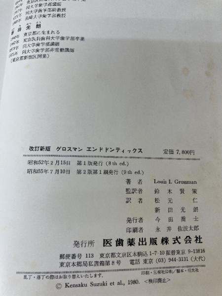 【※難あり】改訂新版 グロスマンエンドドンティックス 医歯薬出版 鈴木懸策