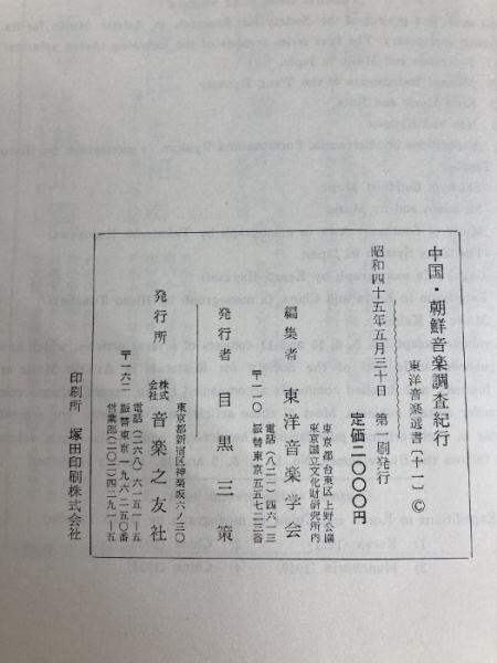 中国・朝鮮音楽調査紀行 (1970年) (東洋音楽選書〈11〉) 音楽之友社 田辺 尚雄