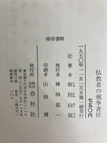 仏教者の戦争責任 (1970年) 市川 白弦