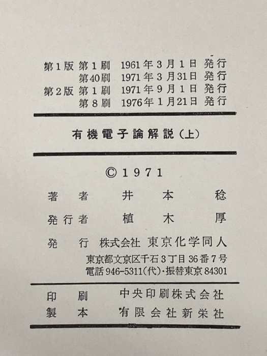 有機電子論解説―有機化学の基礎 (1980年) (現代化学シリーズ〈8,9〉) 東京化学同人 井本 稔