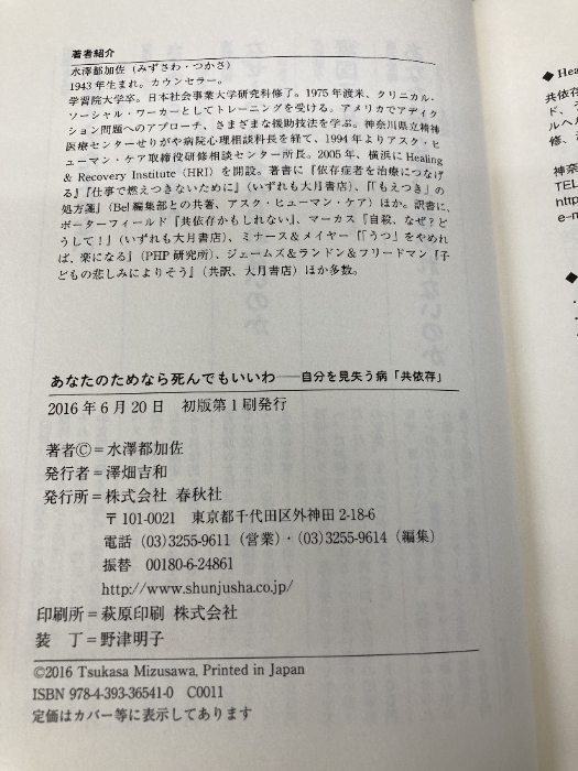 あなたのためなら死んでもいいわ 自分を見失う病「共依存」 春秋社 水澤 都加佐