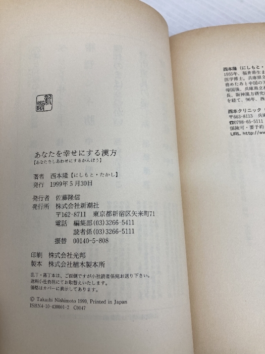 あなたを幸せにする漢方 新潮社 西本 隆 新潮社 西本 隆