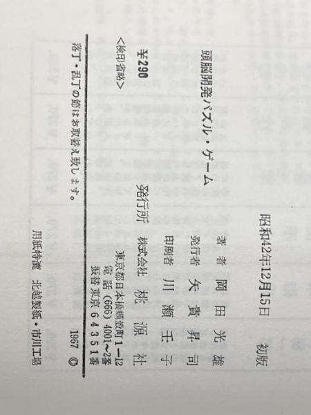 頭脳開発パズル・ゲーム (1967年) (ポピュラー・ブックス) 桃源社 岡田 光雄※イタミ有