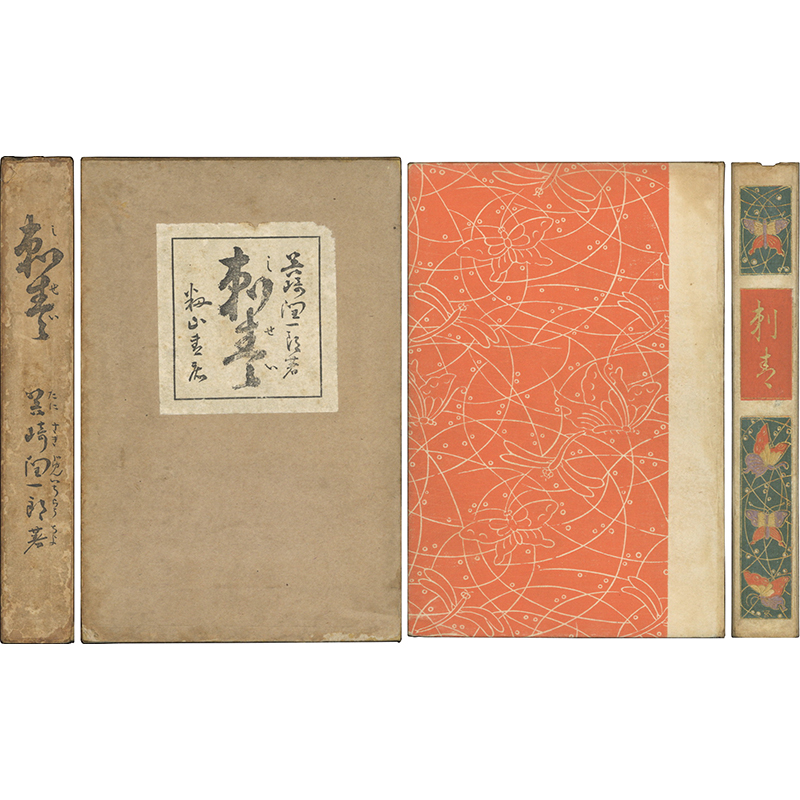 • 解説 初版 装幀・橋口五葉 処女短篇集 胡蝶本 背上部少欠損 蔵書票貼付 函三方少ヤケ少スレ背少傷ミ 初期作品7編を収録した第一創作集。明治年代の谷崎単行本はこの「刺青」のみ。