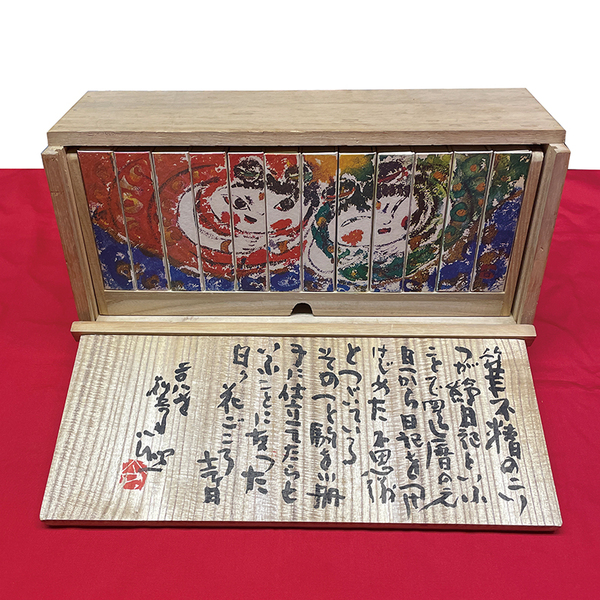 • 解説 限定B版800部のうち№142同番号揃 各々毛筆識語落款入 背革装 三方金 夫婦函 自題桐箱入 箱蓋裏に毛筆長文識語署名落款入 桐箱蓋裏「筆不精のこいつが絵日記といふことで還暦の元旦から日記をつけはじめた 不思議とつづいている その一と駒を小冊子に仕立てたらといふことになった 日々花ごころ十二ヶ月 二百八世 別當公照[落款]」