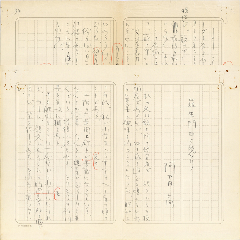 • 解説 『羅生門ひとめぐり』 鉛筆400字詰完 ノンブル15欠番(振り間違い) 専用箋使用 「私の父は鉄工所の経営者で、根っからの技術屋であったが、四十歳を過ぎる頃からにわかに蒐書の趣味を持つようになった。~」