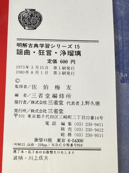 ※イタミ有 謡曲・狂言・浄瑠璃 (1973年) (明解古典学習シリーズ〈15〉) 三省堂
