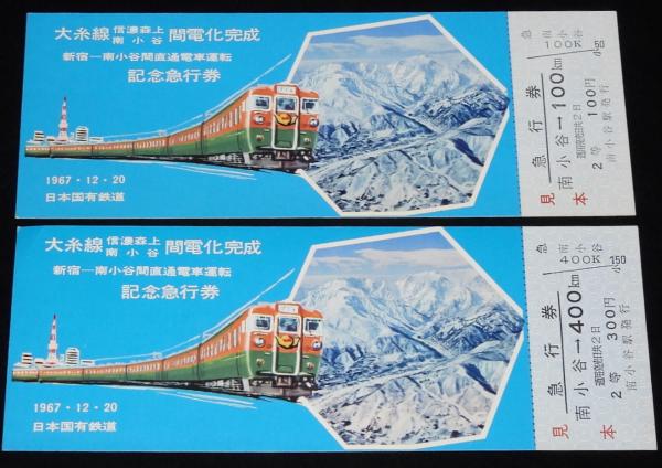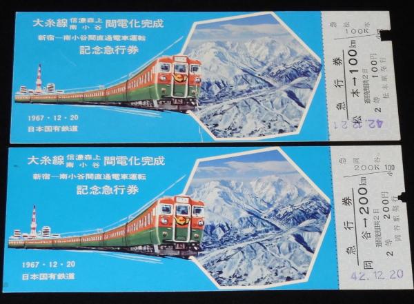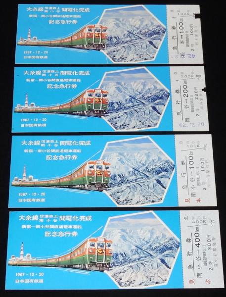 【切符】大糸線 信濃森上 南小谷間電化完成 記念急行券 4種セット 昭和42年/国鉄
