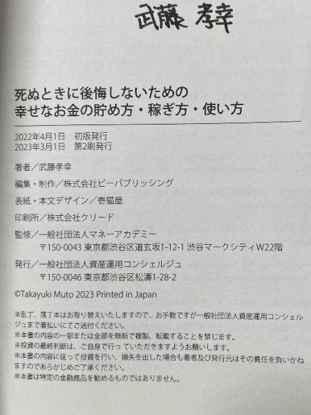 死ぬときに後悔しないための幸せなお金の貯め方・稼ぎ方・使い方 ビーパブリッシング 武藤孝幸