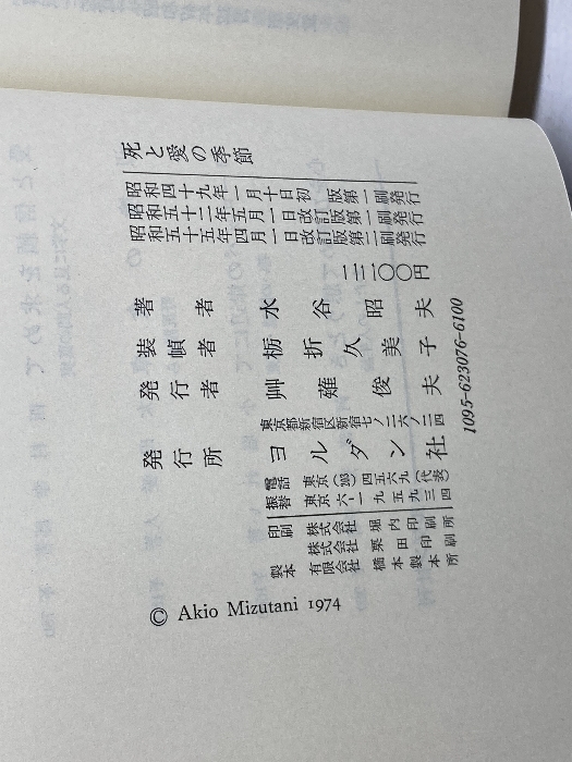 死と愛の季節 現代日本文芸の実存的諸問題  水谷昭夫  ヨルダン社
