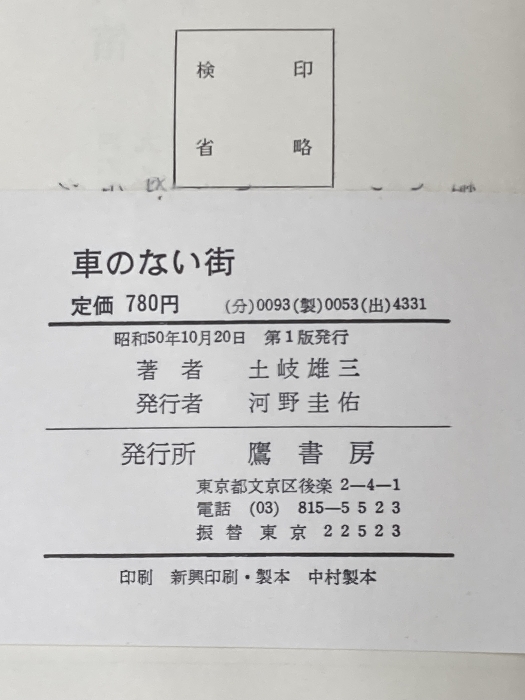 車のない街 (1975年) 鷹書房 土岐 雄三