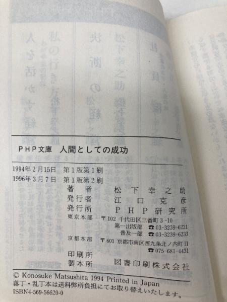 【※カバー無し】人間としての成功 (PHP文庫 マ 5-16) PHP研究所 松下 幸之助