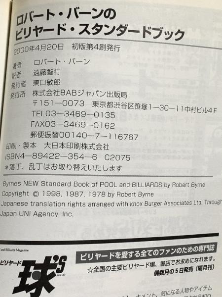 ロバート・バーンのビリヤード・スタンダードブック ビーエービージャパン ロバート バーン