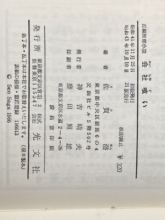 会社喰い (1966年) (カッパ・ノベルス) 光文社 佐賀 潜※イタミ有