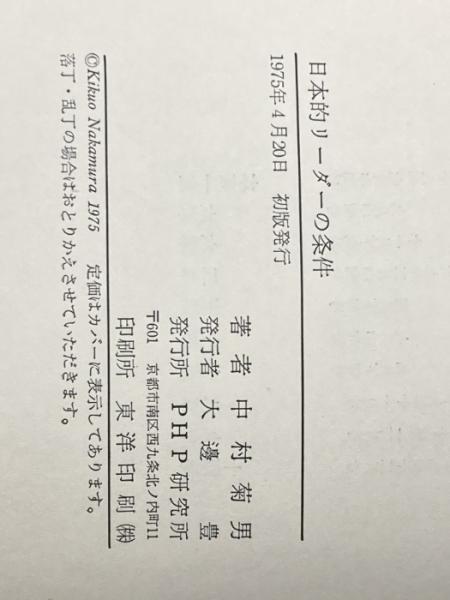 日本的リーダーの条件 (1975年) PHP研究所 中村 菊男