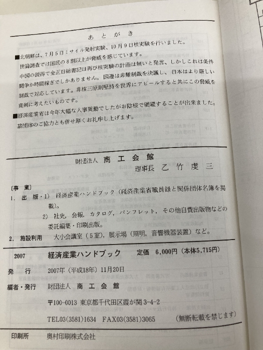 経済産業ハンドブック: 経済産業省職員録・主要団体名簿 (2007) 商工会館 商工会館