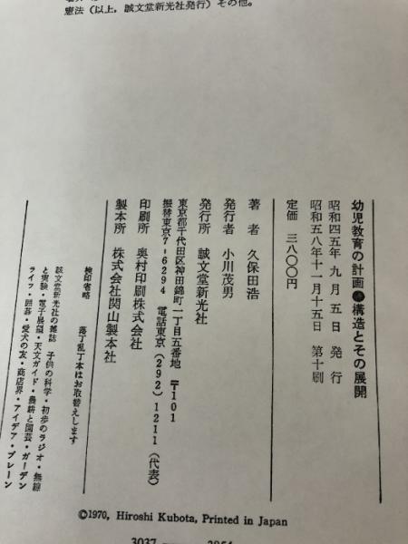 【※書き込み有】幼児教育の計画 : 構造とその展開 誠文堂新光社 久保田 浩
