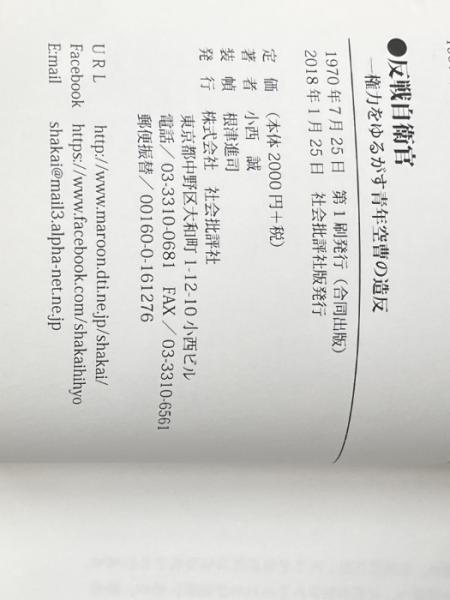 • 解説 ※2018年1月 社会批評社版発行 ※画像と表紙は異なります。裸本(カバー無し)。表紙にスレ、ヤケ、天地小口にスレ、ヤケ、シミ、多少のキズ、本にスレ、ヤケ、があります。本を読むことに支障はございません。※注意事項※■毎商品チェック後出品しておりますが、中古品ということもあり、多少の書き込み等のチェック漏れがあった際はご容赦下さい。■付録等の付属品がある商品の場合、記載されていない物は『付属なし』とご理解下さい。■併売販売をしているため、在庫切れの場合はキャンセルとなります。予めご了承ください。