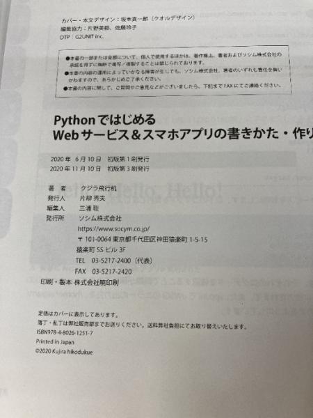 【※カバー無し】Pythonではじめる Webサービス&スマホアプリの書きかた・作りかた ソシム クジラ飛行机